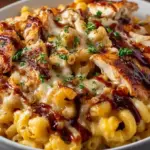 A comforting blend of creamy cheese, tender BBQ chicken, and hearty pasta, perfect for family gatherings or cozy nights in.