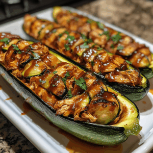 BBQ Chicken Stuffed Zucchini Boats are a delicious and healthy dish that combines tender zucchini with flavorful BBQ chicken, making it a perfect meal for any occasion.