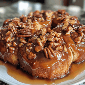 Caramel Pecan Sticky Buns are a deliciously sweet breakfast treat, featuring a soft, fluffy dough topped with a rich caramel sauce and crunchy pecans.