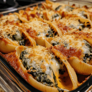Making Cheesy Spinach Stuffed Shells is more than just preparing a meal; it’s about creating moments of joy around the dinner table. The delightful aroma wafting through your kitchen will draw your family in, eager to share a meal together. Each bite is a comforting reminder of home, filled with creamy goodness and a touch of nostalgia. Whether it’s a busy weeknight or a special occasion, this dish brings warmth and happiness to any gathering. So, roll up your sleeves, embrace the mess, and enjoy the love that comes with every cheesy, spinach-filled shell!