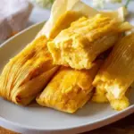 Delightful corn tamales made with fresh corn and masa, wrapped in traditional husks and steamed to perfection.