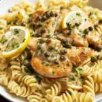 Delicious Chicken Piccata Pasta served with lemon and capers