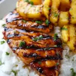 Serve: Spoon a generous bed of coconut rice onto each plate. Top with the grilled chicken and crown it with the sweet, caramelized pineapple slices.