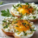 - Add Yolks and Toppings: Nestle a yolk into each white nest, then top with cheese and herbs if desired.