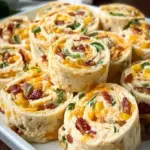 Add Bacon (Optional): Sprinkle bacon bits on top of the pinwheels, if you wish. This little enhancement brings a delightful crunch and smokiness to each bite.