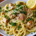 Imagine the first forkful: tender chicken bathed in luscious cream, with the tang of fresh lemon cutting through, awakening every sense. Each bite of pasta—perfectly cooked spaghetti or fettuccine—offers a comforting familiarity, while a sprinkle of freshly grated Parmesan adds a nutty depth. A hint of garlic wafts in with every mouthful, a gentle reminder of the love stirred into the dish. This dish encapsulates joy, making any meal feel like a celebration.