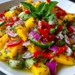 Vibrant mango salad with tangy lime dressing and fresh herbs.