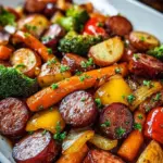 A comforting one-pan meal featuring juicy kielbasa, honey, garlic, and fresh vegetables, perfect for weeknight dinners.