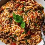 This dish is the epitome of comfort food, bringing together simple ingredients to create profound flavor without the fuss. It’s perfect for busy weeknights, but special enough for gatherings or a soothing weekend family dinner. Surrounded by loved ones, you can almost hear the gentle hum of happiness as the savory goodness melts into every corner, creating an atmosphere filled with warmth and nostalgia. The beauty lies in its simplicity; one pot, minimal prep, and yet the flavor sings in harmonious delight. Whether you’re feeding a crowd or enjoying a cozy solo meal, this One-Pot Ground Beef and Orzo beckons you into the kitchen, inviting you to be part of the magic.