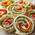 Delightful pinwheel appetizers featuring a blend of cream cheese, deli meats, and fresh vegetables, perfect for any gathering.