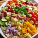 This dish isn’t just a salad; it’s an experience full of spirited conversations, laughter echoing around a summer table, and the warmth of shared moments. The vivid colors entice both the eye and the appetite, making it an irresistible centerpiece for any gathering. Whether you’re hosting a lively picnic, enjoying a family barbecue, or simply savoring a quiet dinner, this Ultimate Italian Pasta Salad elevates every occasion, transforming ordinary moments into extraordinary memories.